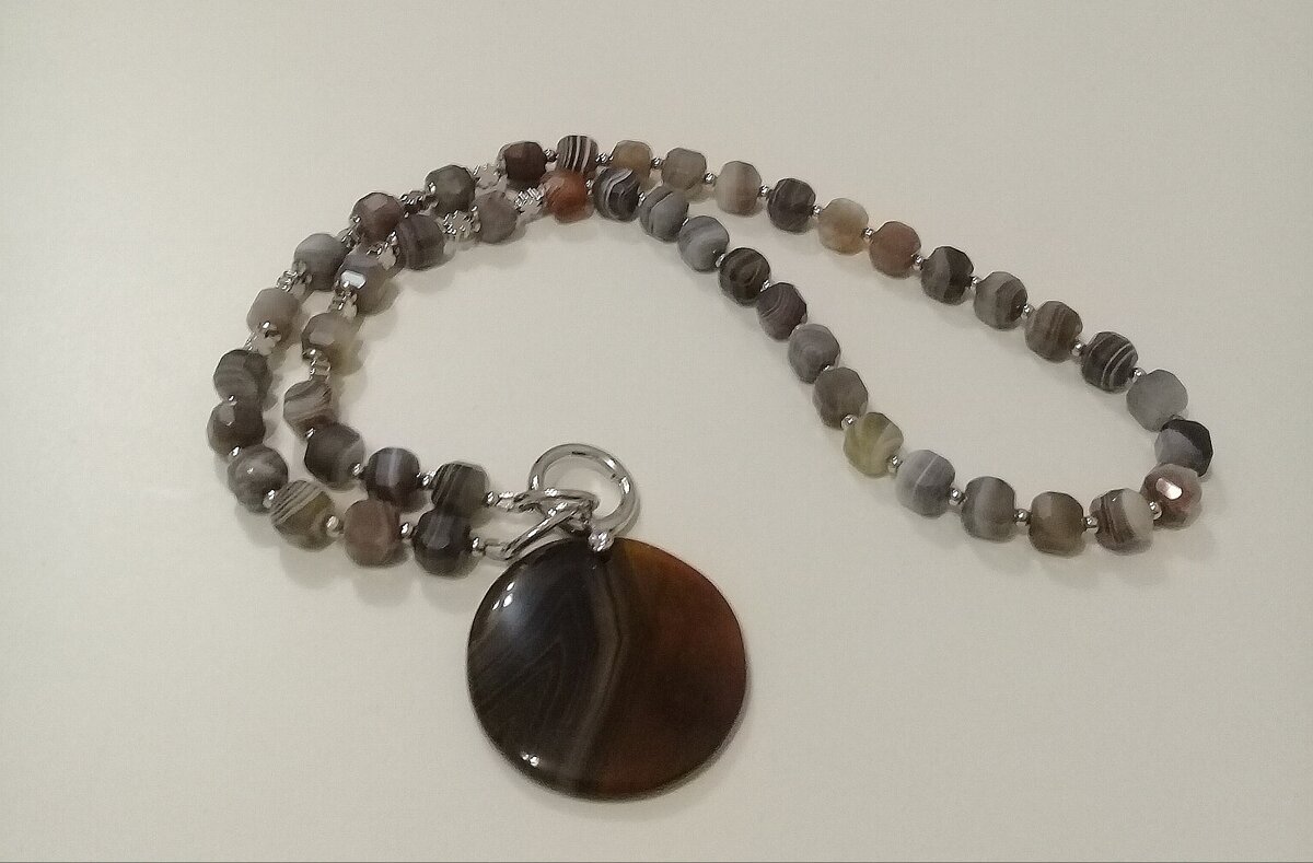 Бусы и кулон из агата Ботсвана .