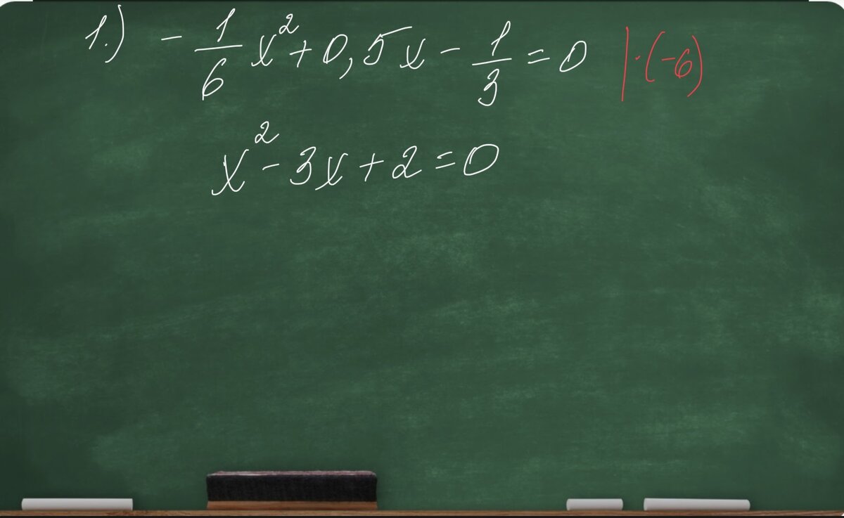 💫Следующий совет: будь проще! Если можешь упростить решение, сделай это, прежде чем его решать. Что тебе лично не по душе? Деление на отрицательные числа, деление на большие числа, двухэтажные дроби? Дроби вообще? Потрать немного времени и избавься от того, что тебе не нравится 👍🏻 Пример Его можно решать через дискриминант, но можно перед этим сделать еще один дополнительный шаг, который избавит тебя от числовых дробей и даст положительный коэффициент при x^2: умножить обе части уравнения на -6. Это не обязательный шаг, но он здорово облегчает жизнь ✅Короче:упрощай уравнения и избавься от неприятных действий. 💫Обеспечь простор Сложные уравнения сразу не решаются, мы постепенно их преобразовываем, упрощаем, приводим к удобному виду. Есть специальный способ записи, чтобы избегать ошибок в преобразованиях. Уравнения выглядят обычно так: левая часть, знак равенства, правая часть. А мы будем записывать их чуть иначе: левая часть, маленький пропуск, знак равенства, правая част