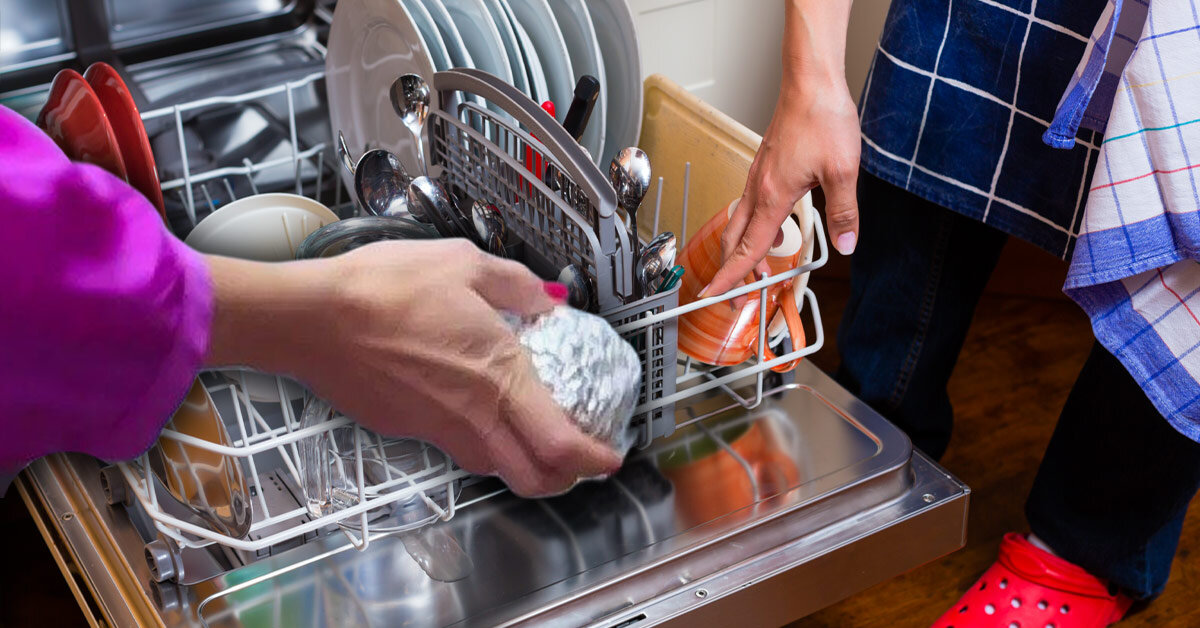 Брось в посудомоечную машинку шарик из фольги и посмотри, как всё засияет