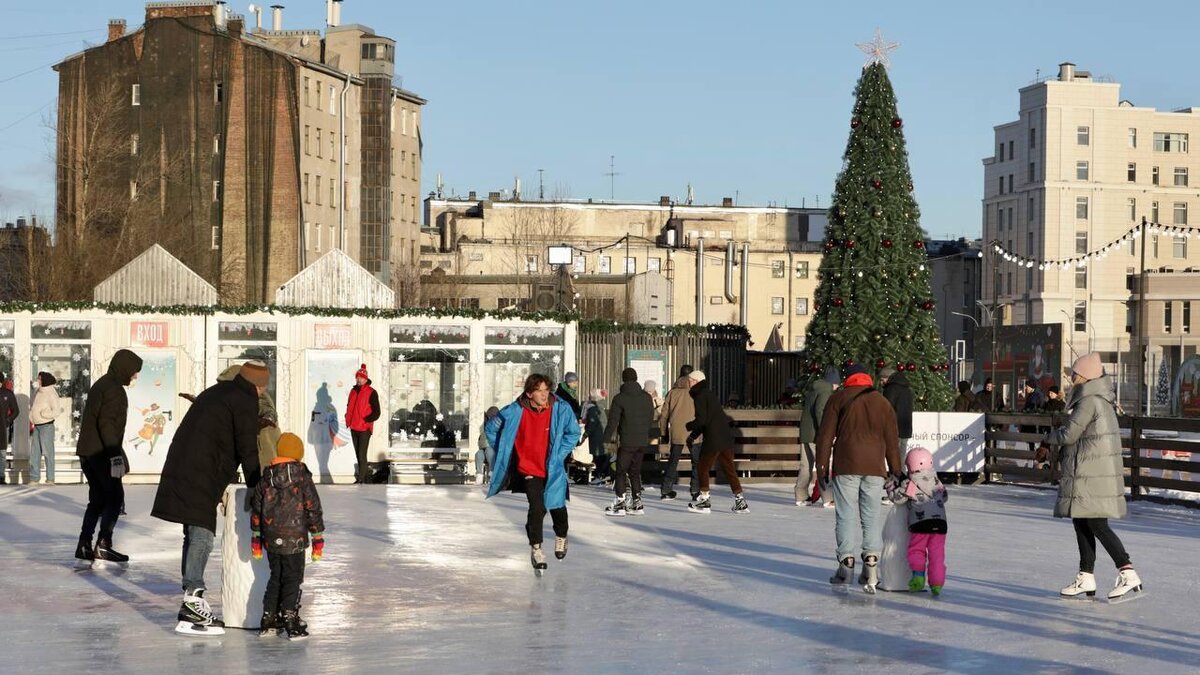 У Балтийского вокзала открылся огромный каток под открытым небом — видео