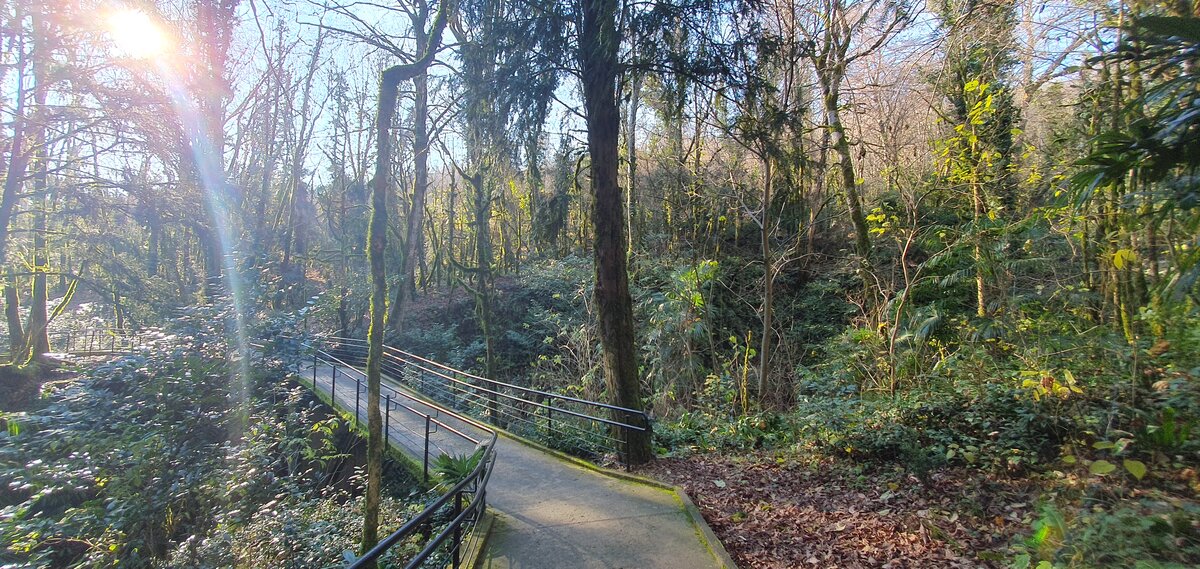 Находится в Хосте. Всё лето собирались сходить в одно из самых известных и красивых мест курорта. Но нежелание толкаться с толпами туристов было сильнее. В лучах декабрьского солнца роща кажется чем-то сказочным, как будто ты в игре Принц Персии, что проходил в детстве. Подъездная дорога к главному входу, кажется, после зимних дождей превратится в руины, как и в игре🤦♂️. Оползень с корнем вырывает бетонные сваи опорной стены. На легковушке пока проехать можно. За 3 часа средним темпом удалось пройти большой круг и туда-обратно пройти к каньону Чертовы ворота. Большой круг лучше не идти целиком, а пройти туда-обратно вдоль речки. Дорога лучше оборудована ступеньками и виды гораздо красивее.👌В целом скользких мест практически нет, идти можно уверенно в отличие от маршрутов к Агурским водопадам. На маршруте много лавочек и столов для перекуса. Есть даже туалеты. Малый круг полностью забетонирован, можно даже с коляской гулять. В декабре народа почти совсем нет, никто не мешает фотограф