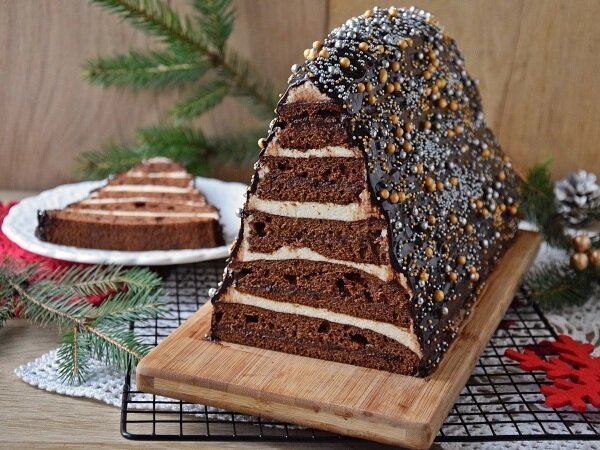 Ароматные имбирные пряники традиционно готовят к Новому году. А что, если приготовить не пряники, а коржи для торта? Прослоенный сливовым джемом и заварным кремом, он будет иметь неотразимый вкус. А если ему придать вид новогодней елочки — такой торт невозможно не заметить среди рождественских сладостей. Это классический пряничный торт, но приготовленный в форме елочки, покрытый шоколадом и кондитерскими украшениями в виде карамельной посыпки. Готовится такая красота совсем несложно, ведь придется испечь всего один корж и промазать его сливовым или абрикосовым джемом и заварным кремом из манки. Украшения на эту сладкую «елочку» могут сделать дети. Ингредиенты: Для пряничного теста: Для заварного крема: Для шоколадной глазури: Кроме того: 1,5 стакана густого сливового варенья (330 мл); кондитерские украшения. Приготовление: Готовим имбирное пряничное тесто Готовим заварной крем Готовим шоколадную глазурь Приятного аппетита и с наступающим Новым годом!