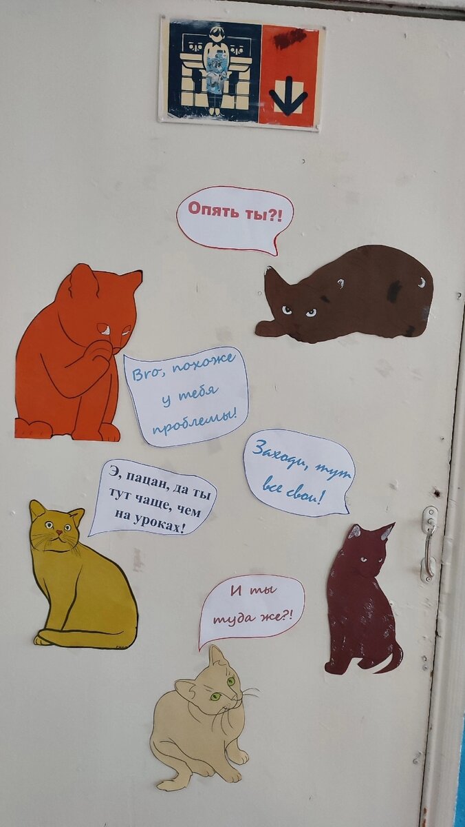 ❄ Уже несколько лет в нашей школе накануне Нового года проводится творческая акция "Дверь в Новый год" . Красочное оформление дверей классов и кабинетов привносит в школьные будни нотки радости и ожидания наступающего праздника.👏🏻 ❄ Наступающий 2023 год по китайскому гороскопу год кролика🐇 или кота.🐈 Главными персонажами в оформлении третьего этажа школы стали котики. Те самые, из популярного мема про Наташу и котов. 👍🏻