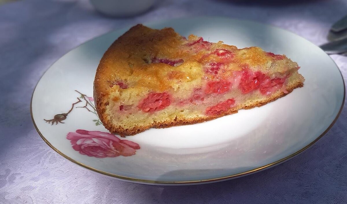 Рецепт этого малинового пирожка дала мне моя сестра. Он такой вкусный, что его неинтересно даже готовить, т.к. съедается он за 5минут. Но и готовится он так же за 5минут) Что нужно для его приготовления: 3 яйца (1 на фото не видно) 150гр сахара, можно 100гр 3сл. ложки сметаны 15 или 20% жирности 1 чайная ложка разрыхлителя или 1/2 ч.л соды, погашенной уксусом или лимонным соком. 3 сл. ложки муки 1 стакан малины, зимой я беру замороженную и даже не размораживаю перед приготовлением. Замешиваю тесто 2 минуты, а пеку 30мин на 180-гр. Смешиваю яйца и сахар, добавляю муку, 1ч.л разрыхлителя, много мешать не нужно, взбивать тоже. Добавляю сметану Смазываю формочку сливочным маслом+посыпаю мукой. Выливаю тесто, распределиться оно само. Получается такой вкусный, что я могу съесть сразу весь. Вкусно и с молоком и с чаем).