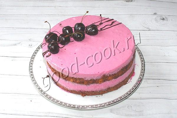 Тортик довольно приятный. Шоколадные коржи в сочетании с кисловатым нежным муссом дают интересный вкус. Основной изюминкой торта является то, что коржи пропитываются тем же ягодным пюре, которое добавляется в мусс. От этого коржи становятся не только влажными, но и приобретают дополнительный оттенок вкуса.
