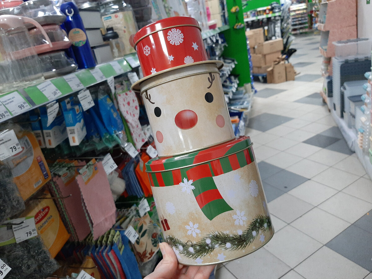 Добрый день, уважаемые читатели! Надеюсь, прошедшие выходные вышли у вас радостными и наполненными счастливыми и яркими событиями) А сегодня начинается рабочая неделя, крайняя в 2022 году, она уже пропитана хвойным запахом ёлки и цитрусовыми нотками мандаринов, значит, самое время найти минут 20 для отдыха и посмотреть, что новенького, симпатичного и интересного появилось в Fix-Price! Кстати, позавчера вышел внеплановый выпуск-обзор, советую заглянуть в него, если пропустили) Чем больше лайков соберёт материал, тем чаще будут выходить обзоры из этого разнопланового магазинчика! Начнём мы с первой части кухонного отдела, потому что именно там я раздобыла такую прелесть! Это набор жестяных банок в виде новогоднего персонажа. В данном случае это то ли олень, то ли снеговик) Как считаете, на кого больше похоже? Интересно то, что они скреплены между собой и основание каждой следующей ёмкости является крышкой для предыдущей. Мне очень понравилась идея, потому что я ронятель похлеще ко