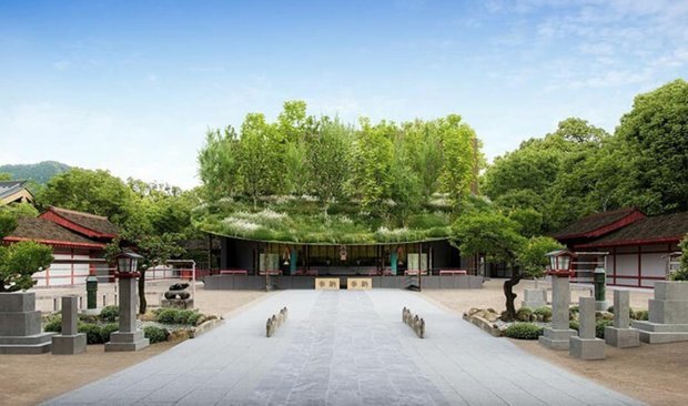 В японском городе Фукуока есть древний синтоистский храм Дадзайфу Тэммангу. Главное святилище закрывается на реконструкцию, и японское бюро Sou Fujimoto Architects подарило посетителям невероятный временный павильон, который расположится прямо перед ним. Помещение заменит древний храм на несколько лет. Фото: designboom.com Главная особенность временного павильона — потрясающая озелененная крыша, которая напоминает лес, выросший прямо на здании. Этот элемент — связующее звено между зданием храма и природой. Растения сотрут границу между интерьером и экстерьером. Фото: designboom.com Дадзайфу Тэммангу — главное святилище бога учености, культуры и искренности Тэндзину. Каждый год сюда приходят примерно 10 млн человек. Примечательно, что во временное святилище верующие смогут заходить, не снимая обувь. Также архитекторы продумали пандус, позаботившись о пожилых посетителях и детях. Фото: designboom.com В главном святилище, построенном 430 лет назад, не проводили серьезные работы по реконст