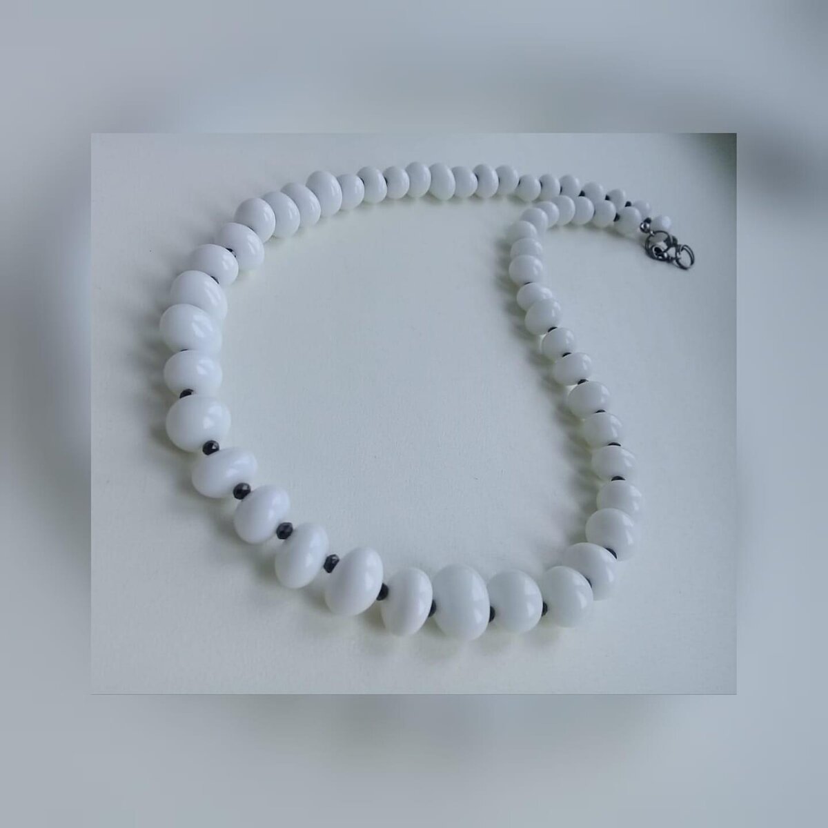 Бусы из нестандартных бусин белого агата и маленькой черной бусинки шпинель . Изделия из белого агата могут носить все , он дарит спокойствие и равновесие. Бусы продаются.