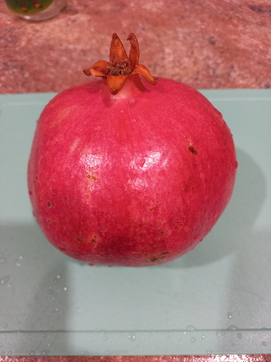 На прошлой неделе дочь кушая гранат сказала, мама, а ты знаешь у подружки родители просто разрезают его на половинки.... А я думала, что все уже знают как его открыть легко и без брызг. Сейчас декабрь - самое время кушать гранаты. В магните продают сейчас очень вкусные, спелые. Я вчера купила, цена 109рублей за килограмм. Один большой у меня вышел на 64р.(нам с детьми на троих как раз) Как же его легко открыть гранат? Нужно вырезать у него верхушку где был цветочек. Потом я делаю вот такие надрезы После чего, просто раскрываю гранат. Многие не покупают гранаты из - за того, что не хотят мыть от брызг потом всю кухню. Открывая таким способом брызги минимальны, а то и вовсе нет.