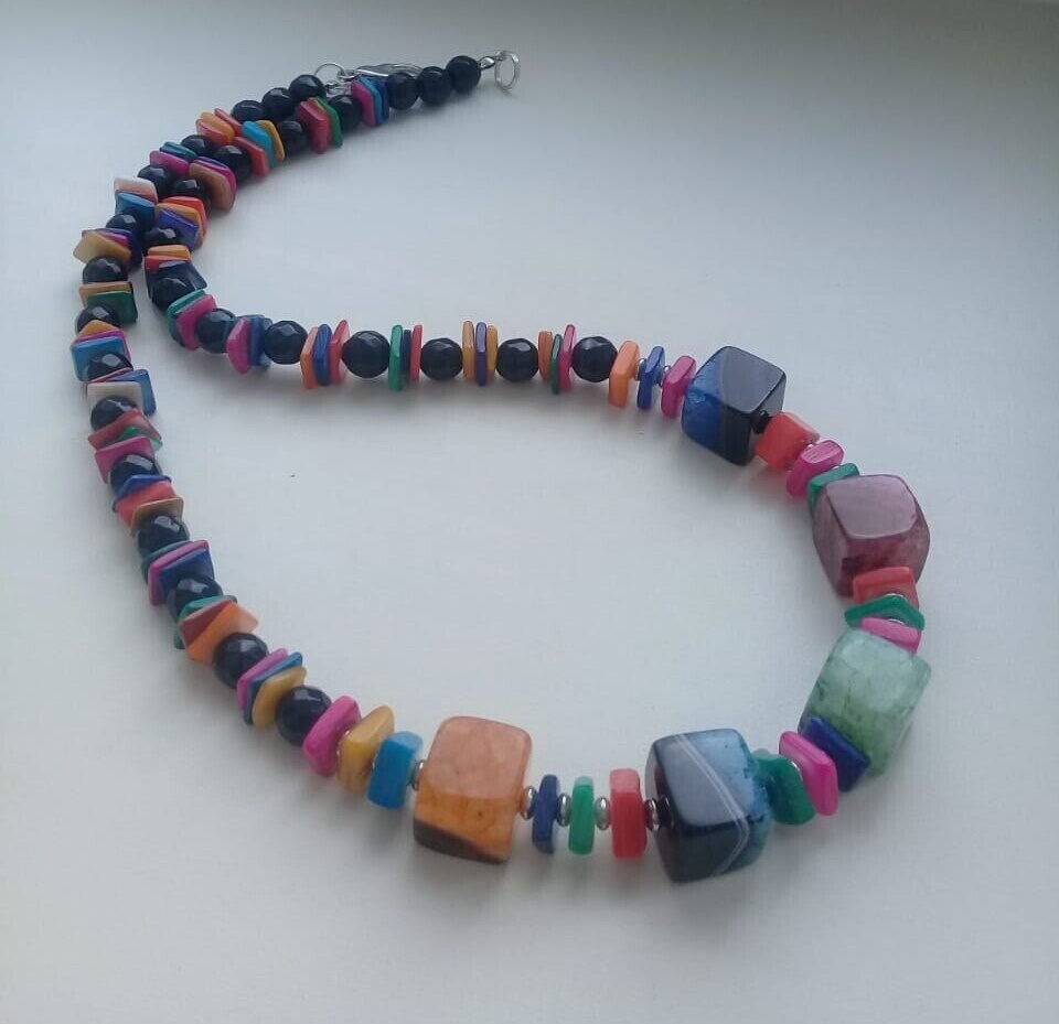 Бусы из бусин разной формы агата , пластин перламутра и фурнитуры .