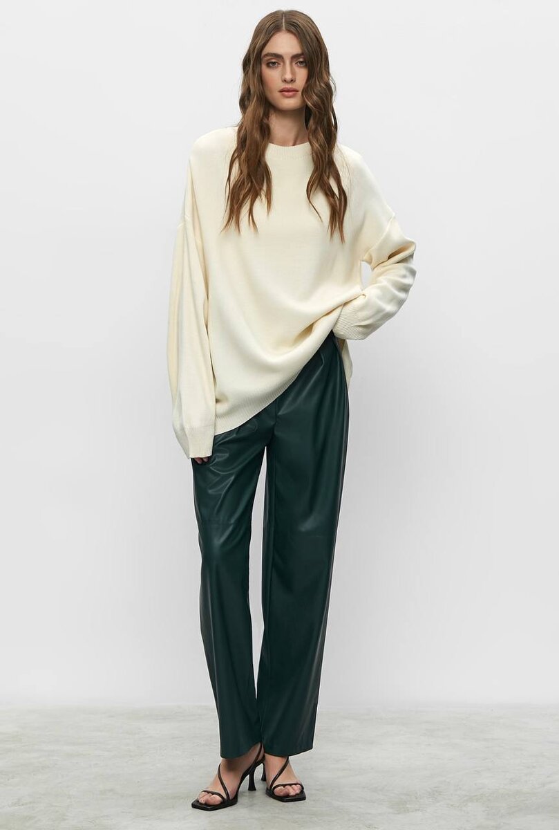 Такая модель подойдет девушке в любом возрасте и, пожалуй, любой сферы деятельности. Как выбрать правильные кожаные брюки? В этом сезоне предпочтение отдано модели с широкими штанинами, а вообще можешь смело обращаться к стилистам нашей площадки - они подберут тебе ту модель, которая подойдет тебе на 100%. *на фото брюки широкие из экокожи. стоимость 8.999.