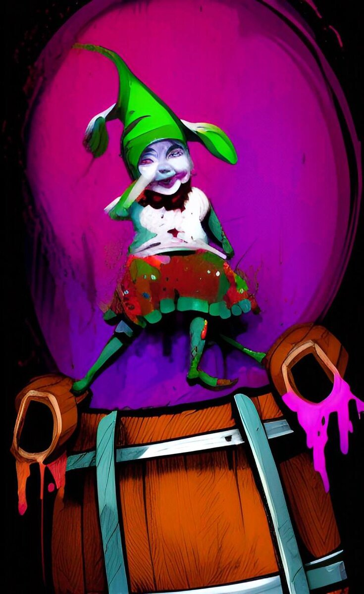 А спустя мгновенье впала в ступор. Когда люди опустили глаза, то увидели, что все исчезло, не было размалёванных клоунов и маленьких обезьян, пропали разукрашенные фургоны вместе со сценами. Только лишь на середине площади, пританцовывая на бочке из-под вина стоял и смеялся карлик в одежде шута.