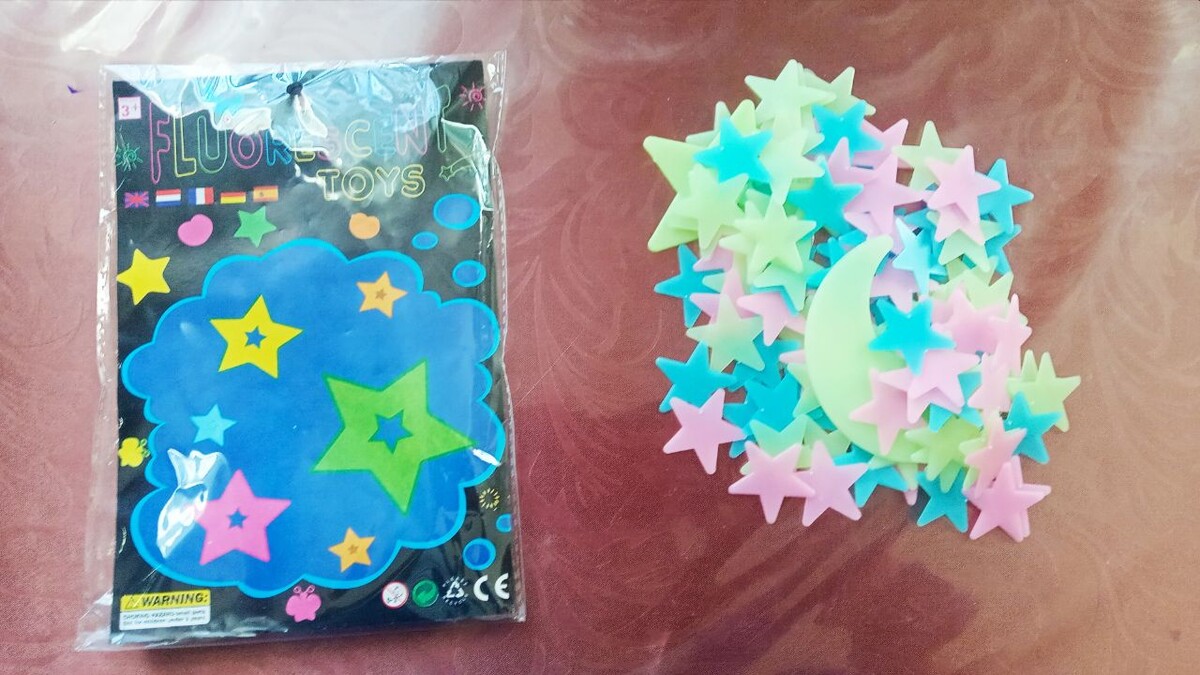 Готовлю программу для очередного семейного мероприятия, которое состоится в кафе на зимних каникулах. И очень мне хотелось сделать какую-нибудь инсценировку на космическую тему. Ломала голову, ломала несколько дней, а потом придумала. Делюсь идеей, можете воплотить ее потом для своих близких. После того, как все уже пообедали и немного насладились общением, мы приглушим свет и объявим, что сегодня нас ждет необычное путешествие. Мы "улетаем" на экскурсию по галактике Млечный Путь. Все это будет сопровождаться космической музыкой, я все приготовлю заранее. В это время мои юные помощники раздадут каждому присутствующему вот такие милые, маленькие, красивенькие и необыкновенные звездочки. Почему необыкновенные? Да потому что звездочки хоть и маленькие, но с сюрпризом! Они флуоросцентные! То есть они светятся в темноте! Случайно увидела такой набор в магазине. И тогда я поняла, что моему космическому проекту быть! Гостей будет около ста человек с детьми вместе, а в наборе как раз ст
