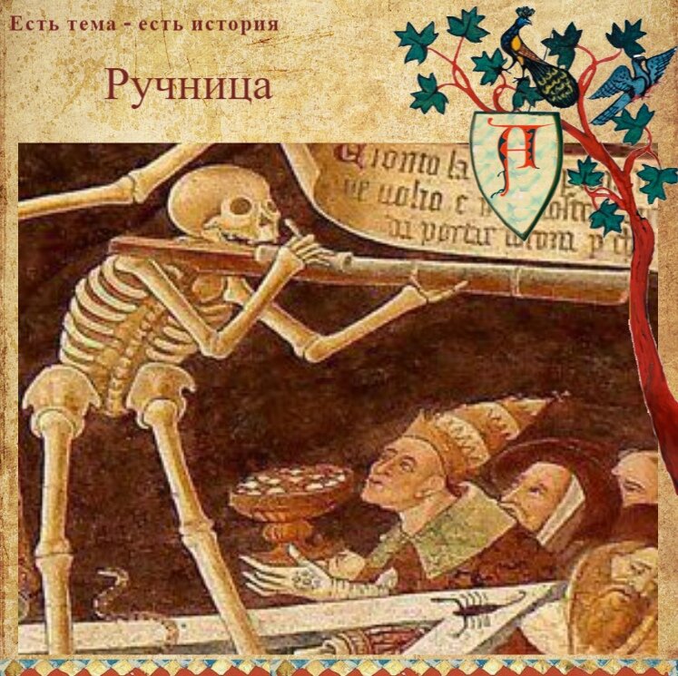 Ручница (еще ее называют ручной бомбардой) — первый образец ручного огнестрельного оружия. По сути, это были маленькие пушки, переносимые одним человеком, — никаких особых отличий от настоящей артиллерии они еще не имели. Ручницы могли заряжать круглой свинцовой пулей (на самом деле — почти ядром!), обернутым в тряпицу камнем подходящих размеров или металлическим ломом. Интересно, что свинцовые пули не сразу заняли свое место в арсеналах. Сперва для стрельбы применяли небольшие камни. Как и пушки, ручницы имели запальное отверстие, ведущее в казенную часть ствола. Единственным принципиальным усовершенствованием ручниц стало появление полки, на которую насыпался затравочный порох — воспламеняясь, он поджигал порох в канале. Выстрел производился с помощью фитиля или "палительной свечи" — пропитанной селитрой палочки.