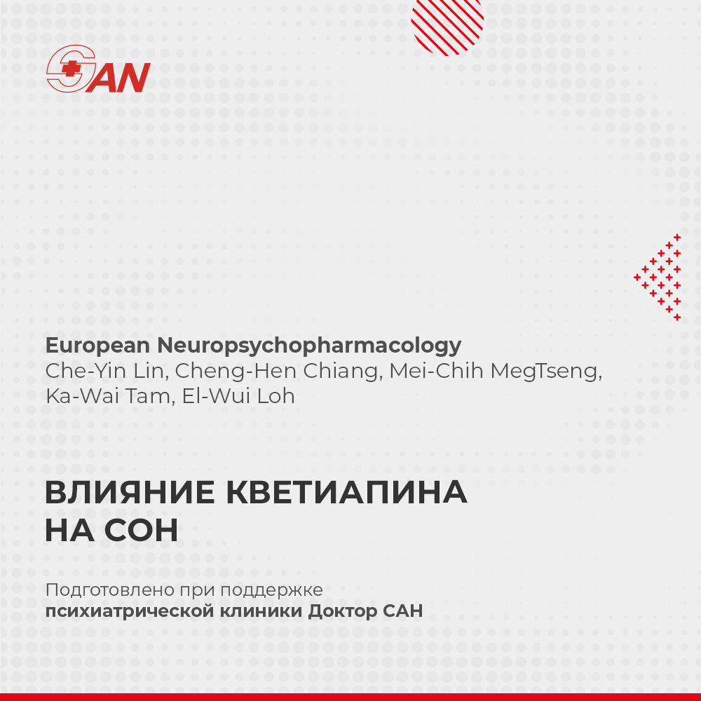 Кветиапин является распространенным антипсихотическим препаратом для лечения бессонницы. Его эффекты при различных заболеваниях и дозировках остаются неясными. Был проведен систематический обзор и метаанализ клинических испытаний, изучающих эффективность низких доз Квеатипина во сне. Было получено 21 клиническое испытание. Средняя разница (MD), стандартная средняя разница (SMD) и отношение шансов (OR) использовались для оценки размеров эффекта с использованием модели случайных эффектов. Объединенные результаты показали, что кветиапин улучшал качество сна по сравнению с плацебо (SMD: -0,57 [95% CI: -0,75, -0,4]). SMD качества сна коррелировал с возрастом (коэффициент: -0,0174) и полом (коэффициент: -0,012). Значимые эффекты наблюдались при общем тревожном расстройстве (SMD: -0,59 [95% CI: -0,92, -0,27]), большом депрессивном расстройстве (SMD: -0,47 [95% CI: -0,66, -0,28]) и здоровые (SMD: -1,33, [95% CI [-2,12, -0,54]) подгруппы, в дозе 50 мг (SMD: -0,36 [95% CI: -0,36, -0,11]), 150 мг