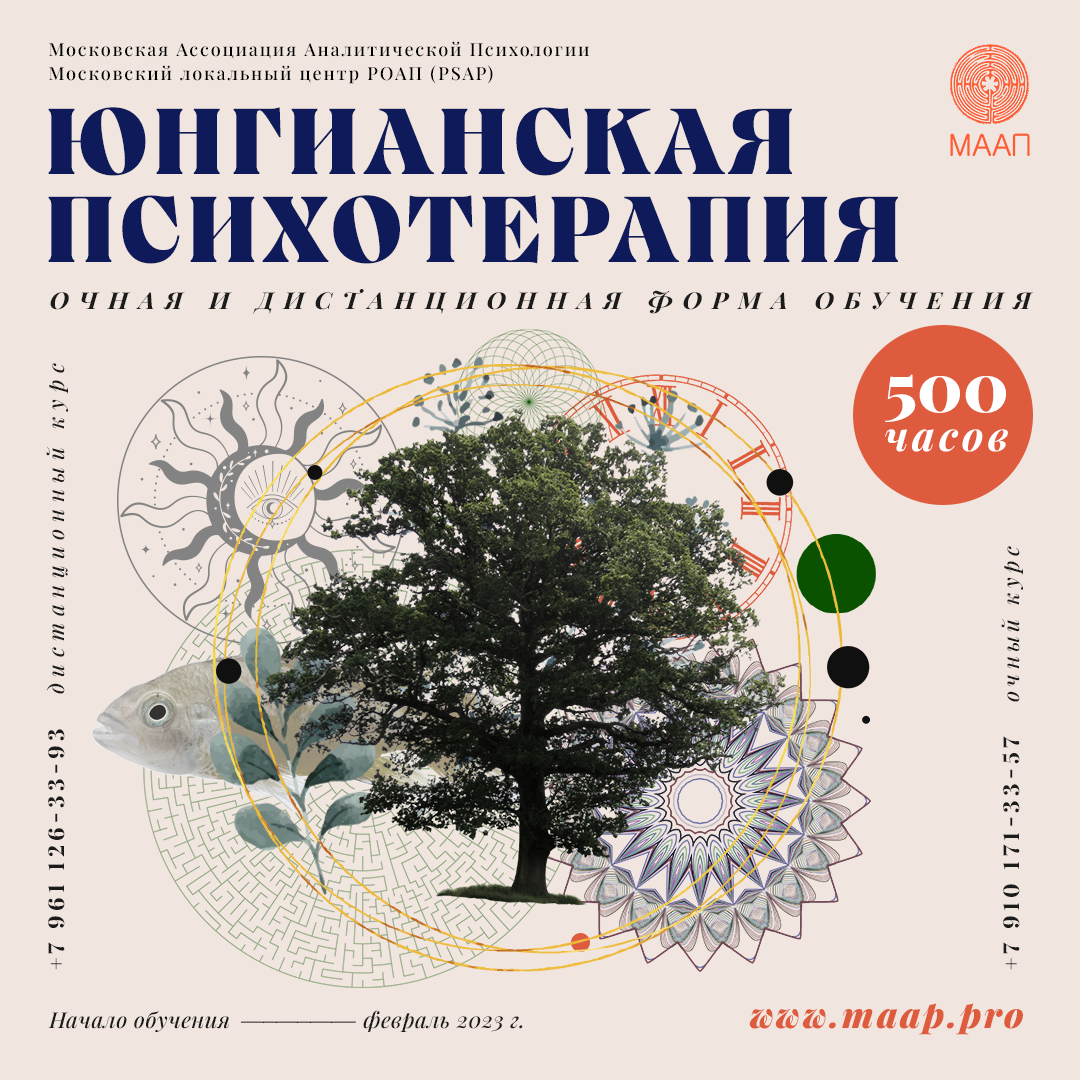 «Решающий вопрос для человека: связан ли он с чем-то бесконечным или нет?» К.Г. Юнг Подари себе в новом году понимание внутренней природы мира, anima mundi. Понимание устройства человеческой психики и этапов индивидуации. Присоединяйся к базовой программе МАПП "Юнгианская психотерапия" (500ч). Получи возможность живого общения с основателями МААП, авторитетами юнгианского психоанализа, ведущими преподавателями - Пуртова Е.А., Раевский С.О., Хегай Л.А., также другими опытными специалистами. Семинары очного отделения проводятся в офисах МААП, по выходным дням (три семинара в месяц, один в неделю). На дистанционном отделении занятия проходят онлайн. Начало обучения в феврале/марте 2023г Длительность курса 19 месяцев (2 года). Обучение на этой программе проводится с 2004 года. МААП уже стало большим сообществом, большой семьей, членом которой можешь стать и ты. В группах 20-24 чел. Продолжительность одного очного занятия 6ч. На каждом семинаре будет лекционная часть, семинарское обсуждение