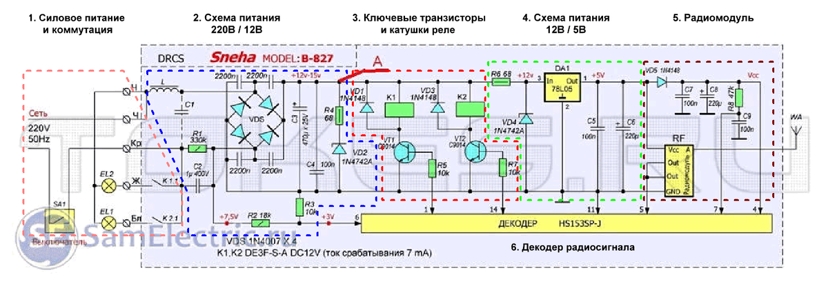 Сегодня ремонтировал очередной контроллер люстры и хочу поделиться к чему может привести выход из строя стабилизатора 78L05. Его перекрыло и пошло на приемник YDK-30 и декодер HS153SP-J около 10 вольт. Питание декодера 2.3-5.5В, совсем не сгорел, но и не работает.