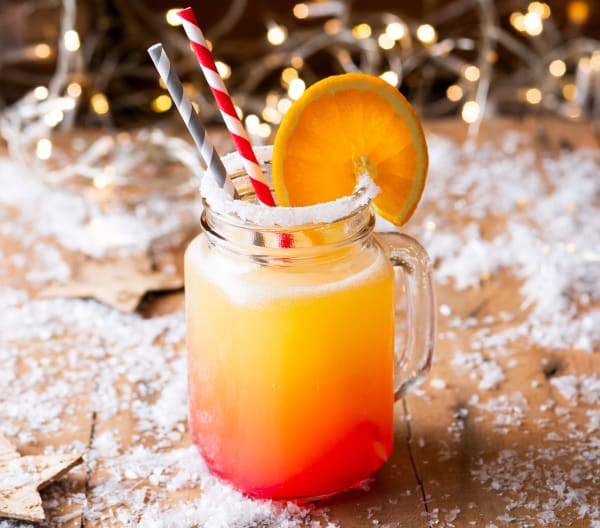 - 6 долек апельсина для украшения или 6 ломтиков лимона для украшения Приготовление 1. Поместите соки, содовую воду, сахар и кубики льда в Миксерную чашу, взбивайте 30 сек/скорость 5-10 постепенно. 2. Смочите края 6 высоких стаканов водой и поставьте их на сахарную подушку. Разлейте коктейль по бокалам и добавьте в