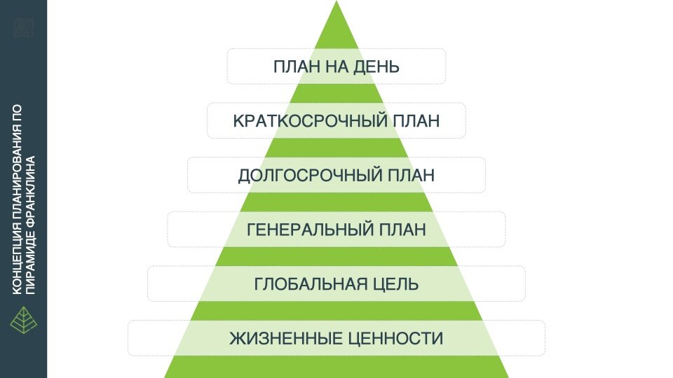 Друзья, год подходит к концу и самое время подумать о вечном - "что же дальше". В этом вам поможет очень интересный инструмент "Пирамида Франклина". Те, кто знаком со мной лично или читает мой блог не первый день знают, что я не люблю «книжные рекомендации» о том, как добиться успеха, или стать счастливым, или заработать много денег и прочее. Я транслирую и пропагандирую только те инструменты, которые лично проверил и доказал их эффективность. Предлагаю вам выделить час своего времени и заняться планированием на 2023 год. Один из таких инструментов как раз Пирамида Франклина и вот как ей пользоваться: Жизненные ценности Начинаем с «фундамента» - жизненных ценностей. Это основополагающие правила и нормы, которые направляют нас в целом по определенной тропинке. Они определяют чего вы хотите от жизни глобально и связаны с потребностями человека и его главными жизненными ориентирами. В основе личной пирамиды Франклин поместил такие ценности, как решительность, трудолюбие, честность, справе