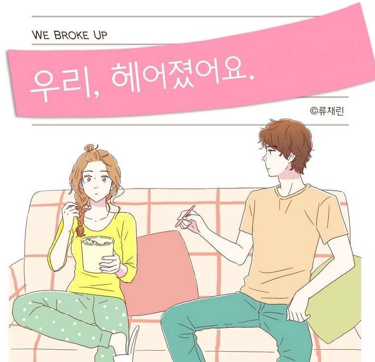 We Broke Up |우리 헤어졌어요 / 我們分手了 Мы привыкли читать работы, где люди знакомятся, влюбляются, преодолевают трудности, женятся. Но что, если люди друг другу просто не подходят? Сегодняшняя работа как раз об этом. Сюжет Но У Ри и Вон Ён встретились, влюбились и жили долго и счастливо… Ну почти долго и почти счастливо. Прожив вместе 5 лет, они поняли, что не подходят друг другу и решили расстаться, только вот незадача, денег на переезд ни у кого из них особо нет. На этом этапе мы и встречаемся с ними. Но У Ри Добрая девушка, которая всегда готова поддержать человека. Пусть она иногда и поступает неразумно. В процессе манхвы мы видим рост героини, она действительно становится взрослым человеком, который готов отвечать за свои поступки. Хоть иногда кажется, что всё и не так. Самая большая её проблема в данный период - не разобравшись со старыми отношениями, начать новые. Вон Ён Главный мужской персонаж. В первые 10 глав его хочется задушить и в остальные 35 тоже, но уже поменьше. Он игр