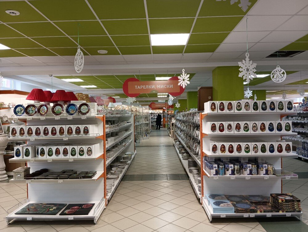 Первый пост из великолепного пресс-туда на Дулёвский фарфоровый завод, сегодня самое простое и прекрасное — например, магазин при производстве. Когда я вошла в него, то отправила Диме это фото с подписью «Пропал калабуховский дом!». Будь моя воля, скупила бы там треть ассортимента. Зачем? не спрашивайте! Посещение магазина у нас было, кстати, запланировано в программе, последним пунктом. Типа сначала покажут товар лицом, а потом мы как всё купим! Но я и так знала, что там много прекрасного, поэтому мы со знакомой успели заскочить в магазин перед началом тура, удачно высмотрели где что стоит, а потом уже пошли туда с чувством и расстановкой :) Ассортимент у Дулёво большой и разнообразный. Как сказал их директор - вы найдёте нашу посуду в любом детском саду, школе, воинской части. Они выпускают очень много дешевого простого «белья» — нераскрашенной белой фарфоровой посуды. Чашки, тарелки, миски. И плюс к этому — красивое, ОЧЕНЬ красивое! И тут цены уже достигают каких-то заоблачных высот