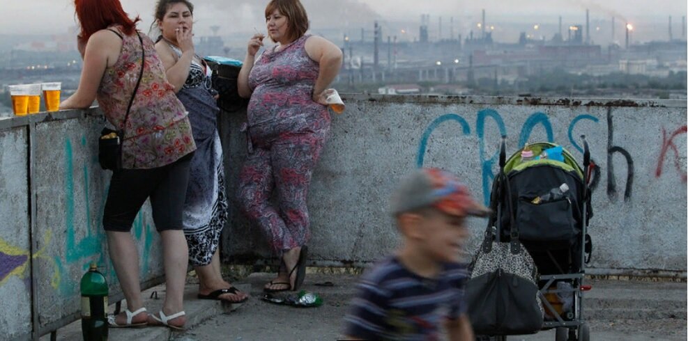 Суровые челябинские женщины... мне подумалось. А под фотографией подпись: Женщины отдыхают на наблюдательном пункте в промышленном городе Магнитогорск, Россия. Согласна. Магнитогорск тоже суровый. Хотя, я не подозревала, что до такой степени.