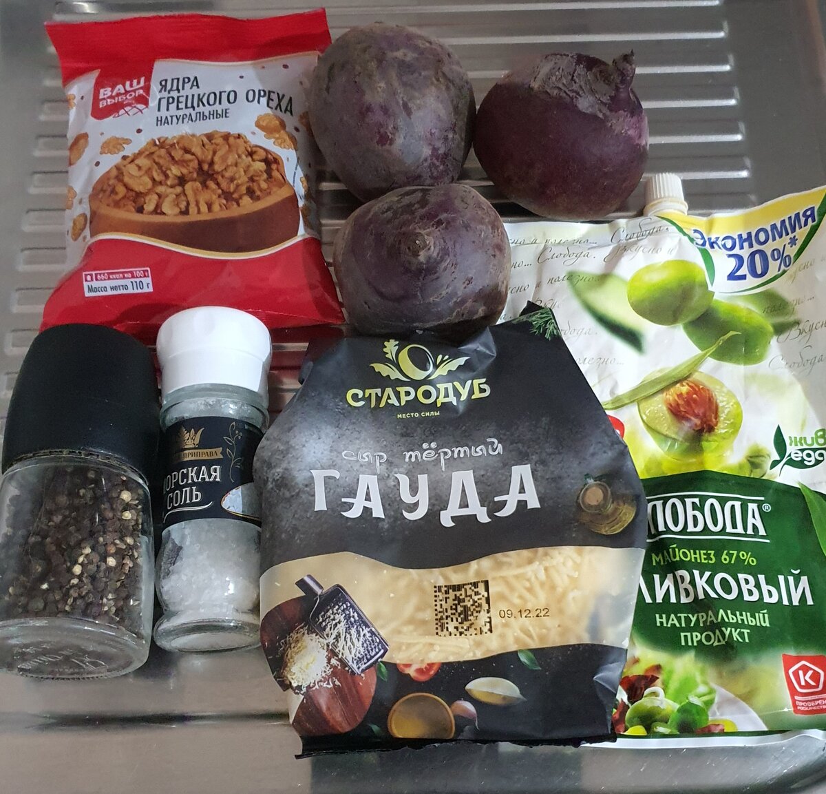 Этот салат знаком всем! Но я открыла его с другой стороны, когда перестала варить свеклу, а стала ее запекать. Конкретно в этом рецепте, запекание дает уменьшении водянистости и более яркий вкус. А в целом, у запекания овощей для салатов целый ряд преимуществ: Ингредиенты: - свекла 300 грамм - сыр твердый 100 грамм - орехи грецкие 30 грамм - чеснок 2 зубчика - соль, черный молотый перец и майонез по вкусу Свеклу хорошо помыть, плотно завернуть каждый по отдельности корнеплод в фольгу. Выложить на противень и запекать в духовке около часа при температуре 200 градусов. Готовность проверяем ножом, если нож легко входит в корнеплод, свекла готова. Свеклу вынуть из фольги, дать ей остыть и натереть на крупной терке. Сыр натираем на мелкой терке. Чеснок очистить и пропустить через пресс или натереть на мелкой терке. Орехи обжарить на сухой сковородке до золотистого цвета. Обжаренные орехи измельчить в блендере или порубить мелко с помощью ножа. В миске соединить свеклу, сыр,