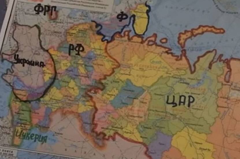 Журналисты опубликовали снимки административной карты, размещенной в кабинете руководителя главного управления разведки минобороны Украины, генерал-майора Кирилла Буданова. На карте Ростовская область, или большая ее часть, уже включена в состав Украины. В планах Буданова, судя по карте, разделить Россию на несколько частей, которые отойдут соседним государствам или станут самостоятельными. Сама РФ будет сосредоточена в районе Москвы и на Урале, Сибирь станет ЦАРом, а Дальний восток, судя по карте, будет под юрисдикцией Китая. Украина собирается заполучить территорию в Крыму, вокруг Азовского моря, и граничащие с ней на севере области. Также в разделе территорий примут участие ФРГ и Финляндия. Часть России на Кавказе помечена как Ичкерия. Генерал-майор Буданов прокомментировал карту. «Может быть, это просто широкий маркер. А может, и нет», — заявил украинский деятель. Ранее украинский летчик Роман Свитан заявил, что Украине придется захватить Таганрог и использовать город для возвращен