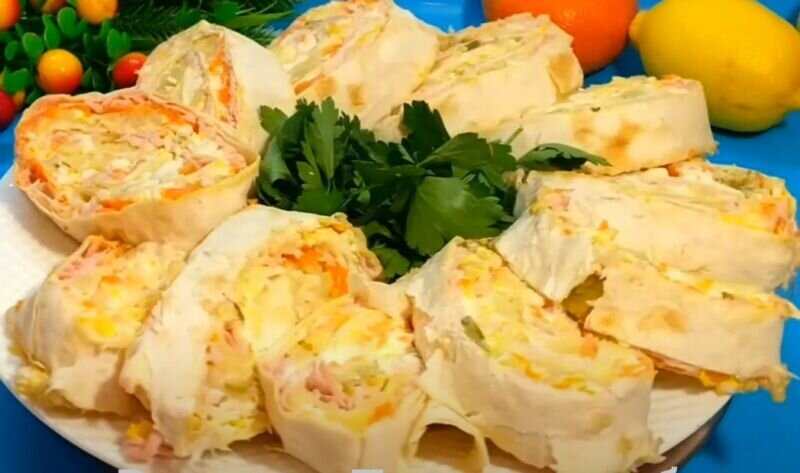 Рулет из лаваша с колбасой, овощами и яйцами – рецепт закуски
