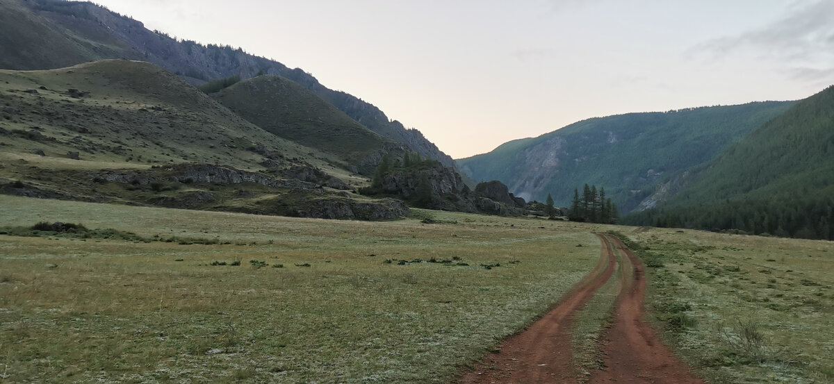 Трек второго дня По плану за первые два дня мне надо было проехать 300 км и оказаться на старте автономного участка на 460 км. Но, так как я вчера сделал задел, мне надо было проехать гораздо меньше. Утро началось с очередной попытки прокатиться/пройти в темноте - ведь с самого утра я должен был двигаться в гору. Это хороший тактический приём, особенно когда на улице околунулевая температура - не мёрзнешь. А вот когда начало светать, и я уже вышел на относительное плато - пришлось остановиться и отогреть руки! Перчатки у меня были короткие. Важный момент! Конечности не отогреваются снаружи - забудьте про растирания и всякие там дыхания на скрюченные пальцы. Отогревать надо изнутри, нас этому учили ещё в лыжной секции - интенсивные круговые махи ру