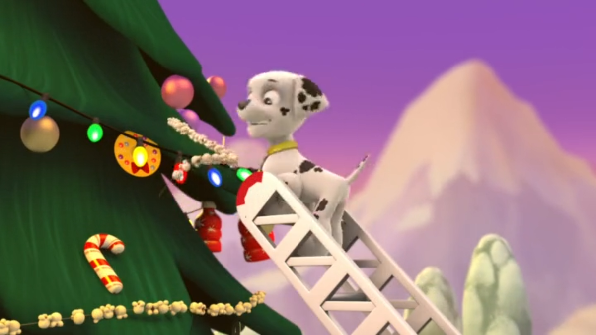 Она конечно существует давно, но и сейчас это актуально так как уже этой недели Новый год, а у кого-то Рождество. Данные серия называется "Щенки спасают рождество" Это 1 сезон 11 серия. Серия начинается с того что щенки наряжали живую ёлку всякими игрушками достаточно высокую что понадобилась и пожарная лестница Маршала. После того как Рокки из своей будки-грузовичка принёс мешок с гирляндами, то щенки начали петь песню про ёлку и рождество, но не стандартную, а другую "Наряжай скорее ёлку.." и в итоге конечно же Маршала сбила одна из рождественских игрушек и он упал в коробку от подарка.