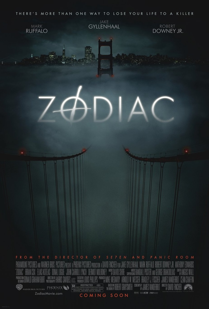 "Зодиак" - криминальный триллер 2007 года, снятый Дэвидом Финчером с участием Джейка Джилленхола, Марка Руффало и Роберта Дауни-младшего. Фильм основан на реальной истории серийного убийцы, который действовал в районе залива Сан-Франциско в конце 1960-х и начале 1970-х годов и так и не был пойман.