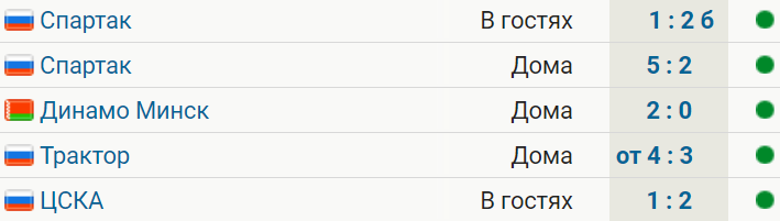 «Динамо» и «Торпедо» выиграли по 5 матчей подряд, у «Спартака» 5 поражений кряду