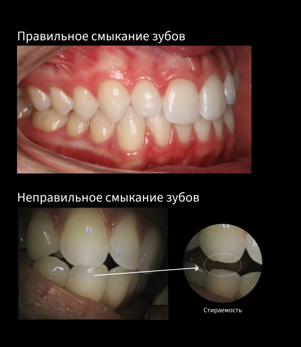 30% людей “теряют” часть своих зубов из-за преждевременной стираемости. Многие не подозревают, что могут с этим столкнуться. Стираемость почти незаметна на начальной стадии. Как распознать стираемость? Проведём эксперимент. Ставь ♥️, если готов участвовать. ⭕️ Открой рот и присмотрись к своим зубам. Есть ли сколы? Различаются ли зубы по высоте? ⭕️Посмотри как выглядят углы резцов. Они должны быть скругленные без прямых углов. ⭕️Проведи языком по поверхности эмали. Ощущаешь шерохотоватость? ⭕️Есть ли повышенная чувствительность к горячему или холодному? Если большинство ответов “ДА”, то процесс стирания зубов набирает обороты😱 ПОЧЕМУ ИМЕННО ТЫ? Нагрузка при жевании 200-400 кг. Зубы стираются у всех, но с разной скоростью. Если прикус неправильный, нагрузка на зубы неравномерная и в местах контактов эмаль трещит как Терминатор 2 на морозе (смотри фото). ЧЕМ ОПАСНО? 1️⃣Оголяется дентин Дентин - слой под эмалью зуба. Он менее крепкий, чем эмаль и его стираемость происходит еще быстрее. Зу