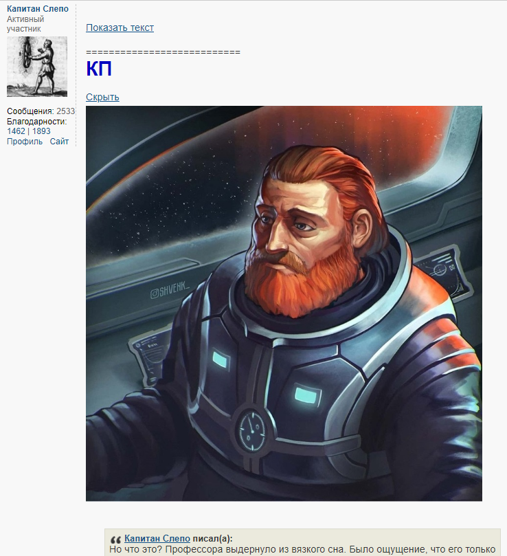 - Капитан Слепо, дорогой мой!.. Ил!.. Вы где?.. Простите, я кажется немного задремал....