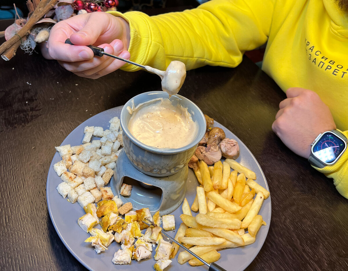 Давным-давно заимел домой шикарную фондюшницу от «Бергхофф», четыре года назад набор стоил какие-то 70byn на акции 60%. И готовил я для гостей ароматную сырную лаву, в которую мы погружали свежий хлеб, оливки, вяленые томаты, отварной картофель и жареные шампиньоны. Мясо в сыре популярностью не пользовалось от слова вообще. После я замачивал котелок, он же какелон, в крутом кипятке и усердно очищал от прилипшего сыра. Вкусно, но грустно.