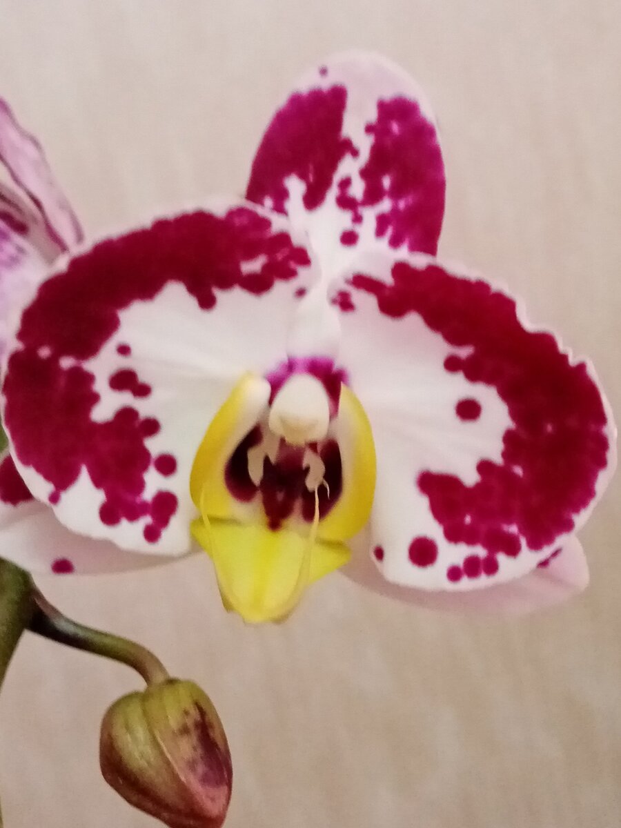 Пришло время зимнего цветения орхидей. Какие - то уже в полном роспуске, некоторые распустили по 1 - 2 бутона, но есть и такие, которые еще растят цветоносы. Шикарный "Мунлайт" - первое цветение после пересадки, всего три цветочка по 10 см. Каждый цветочек имеет разный рисунок при общем цветовом решении. "Fangmei Sweet" - миди орхидея. Яркие розовые цветочки до 6 см с темно - бордовой губой. "Каменная роза" с мутацией, распустила первый бутон. Очень интересная форма цветка. Как бы "розочка" в центре окруженная тремя лепестками. Вроде - бы трилипс, но не совсем. Смотрится необычно и очень красиво. Подсветка на фото слишком высветляет цвет, на самом деле темное бордо. Рядом с розой стоит тоже темно - бордовая орхидея, названия нет. У нее другая форма цветка и очень красивая губа в крап. "Альбуфейра" после короткого перерыва снова зацвела, растит еще один цветонос. Гордый "Ягуар" в цвету. "Розовый Дракон" в почти полном роспуске. А рядом с ним в той же цветовой гамме "Леопардовый принц".