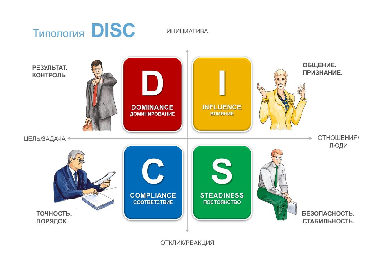 Существует популярная поведенческая классификация людей по системе DISC, созданная на основе работ психолога Уильяма Марстона. Ее очень удобно использовать при формирования стиля текста для сайта, рекламной статьи или другой информации.