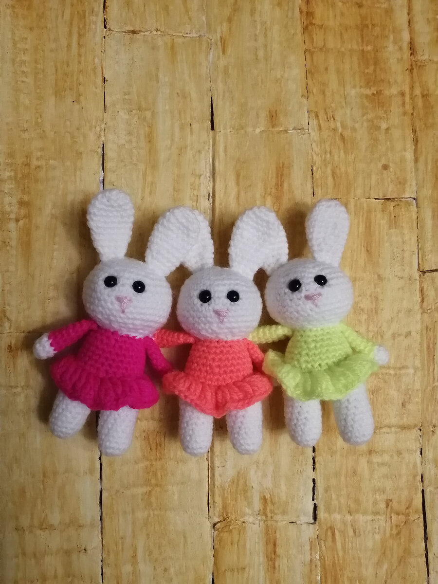 Меня попросили сделать троих... Моя постоянная клиентка, которая сама умеет вязать😉. Она, насколько я знаю, даже купила мастер класс с зайчиками. И спрашивала у меня, где лучше купить безопасные глазки и чем их набивать. Обычно, она заказывает у меня одну игрушку - символ Нового года. А в этот раз попросила сделать целых три). Обычно, я спрашиваю, какие цветовые предпочтения, а большинство постоянных клиентов доверяют выбор мне😁 Так и в этот раз, она попросила любые цвета, но поярче и сделать трех девочек:) Малышки уже отданы и скоро будут радовать своих хозяек, скорее всего маленьких леди☺️