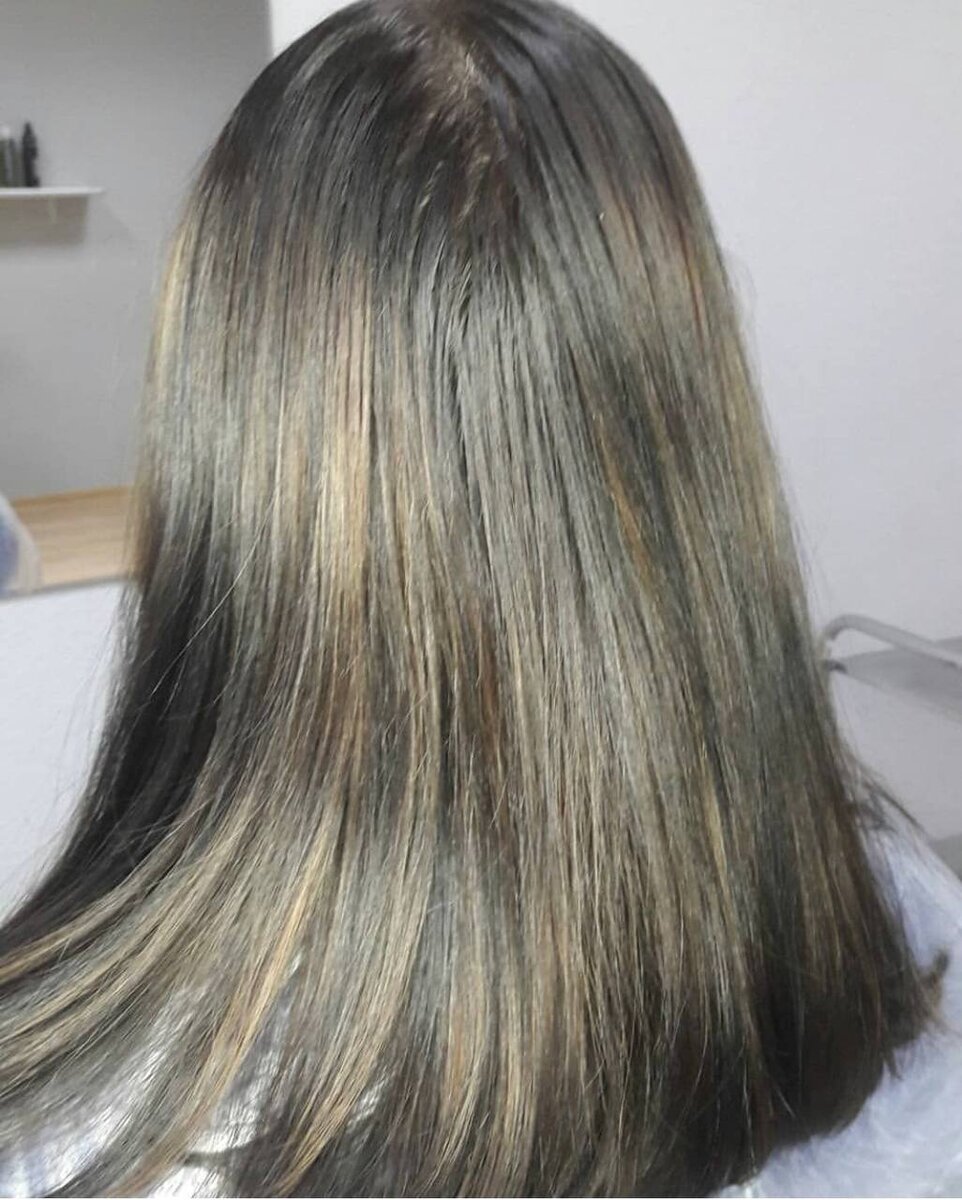 Далее вам предлагают повторить процедуру обесцвечивания через 2-4 недели, пряди станут светлее, там, куда попадет новый состав, а на каком-то количестве черных оп