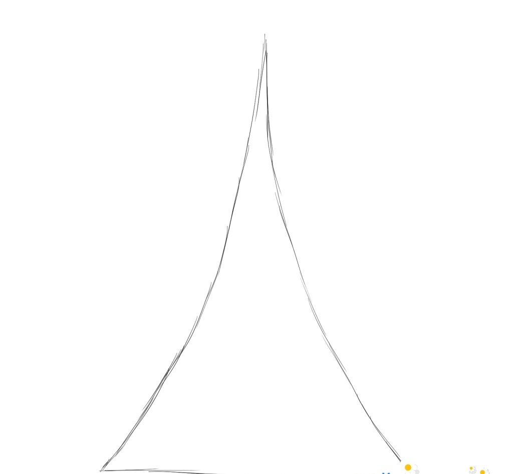 Сегодня поговорим о том как просто и быстро нарисовать известное сооружение, которое стоит в самом центре Парижа – Эйфелеву башню. Используем такие подручные материалы: лист бумаги; простой карандаш; черный маркер; белая гелевая ручка; набор цветных карандашей. ластик. Этапы рисования: 1. Намечаем общий силуэт башни, который напоминает треугольник с изогнутыми боковыми сторонами. 2. Поделим фигуру на несколько частей. На каждой из уровней имеется своя смотровая площадка. Также наметим верхушку. 3. Рисуем внизу две дуги. Соединяем их, чтобы придать немного объема башне. Ластиком стираем линии построения. 4. Добавим мелкие детали на сторонах башни, чтобы показать, что она создана из металлических конструкций. 5. Придаем рисунку обводку черным маркером. 6. Полностью закрашиваем фигуру сооружения серым карандашом. Дальние части основы можно проработать темным оттенком. 7. Черным карандашом создаем тень. 8. Расставим блики белым маркером или гелевой ручко