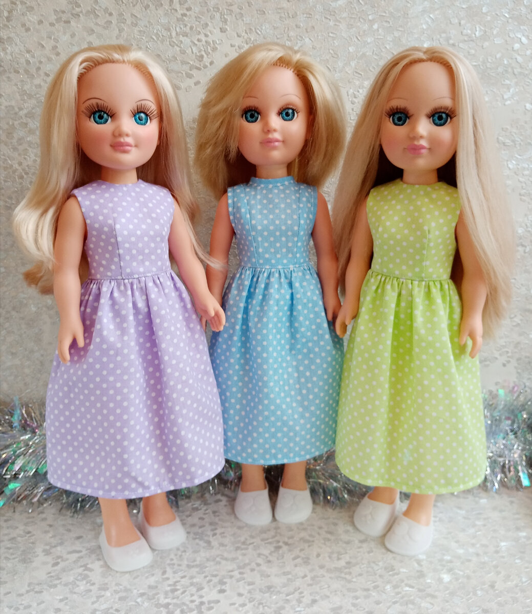 Всем здравствуйте! Сегодня, как и обещала, публикую выкройку для Анастасии от фабрики Весна. Одна из самых красивых кукол у этой фабрики - это Анастасия. Прекрасная девушка с волшебными ресницами. Эту красотку трудно не заметить и именно поэтому у меня их 3. Одну я покупала на Озоне по очень низкой цене. Двух других купила на Авито за "копейки". Платье выполнено из хлопка, лиф на подкладке. Выкройки даны без учёта припусков на швы. Рекомендуемые пртпуски на швы от 0,5 см до 0,7 см. Стрелкой на выкройках показано направление долевой нити на ткани. Для юбки нужно выкройть полотнище ткани длинной 45 см на 20 см. По линии талии и линии низа у панталон пртпуски на шов делаем 1,5 см. Это нужно для вздевания резинки. Благодарю Вас за внимание💐 Подписывайтесь, чтобы не пропустить новые публикации.