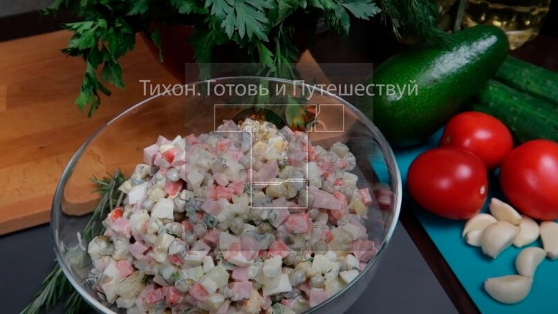 Давайте приготовим классический русский салат «Оливье». Рецепт салата Оливье, пожалуй, один из самых популярных для новогоднего стола. О том как приготовить салат «Оливье» знает каждая хозяйка. У всех вас наверняка уже есть свой фирменный рецепт оливье, а любителей этого «Оливье» среди моих подписчиков не сосчитать. Так давайте разберемся, как легко и быстро его приготовить: какие продукты взять и сколько нужно ингредиентов, чтобы соблюсти идеальные пропорции для салата Оливье. Как именно нарезать овощи для салата, делать ли «Оливье» с мясом или колбасой, с солеными или свежими огурцами — это решать вам. А я покажу вам базовый рецепт с идеальными пропорциями, который вы можете менять на свой вкус. Для салата Оливье вам понадобится: — Картофель вареный, 2 шт.; — морковь вареная, 1 шт.; — яйцо вареное, 3 шт.; — горошек зеленый консервированный, 200 г.; — колбаса вареная, 200 г.; — огурец свежий, 70 г.; — маринованные огурцы, 50 г.; — майонез, 80 г. Способ приготовления: Все перечисленные