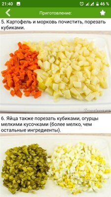 «Оливье» — это классика. Невозможно представить Новый год без этого салата. С приложением «Новогодние рецепты» вы не только приготовите «Оливье», но и сможете составить праздничное меню из своих любимых блюд. Здесь представлено более 300 простых рецептов, разбитых на категории. Возможно, где-то есть и больше, но для начинающих кулинаров этого будет вполне достаточно. Самая популярная категория — конечно же, «Салаты». Тут вам и «Крабовый», и «Греческий», и «Царский», и «Селёдка под шубой», и целых десять видов «Оливье». Осталось только определиться с выбором и добавить понравившийся рецепт в «Избранное».