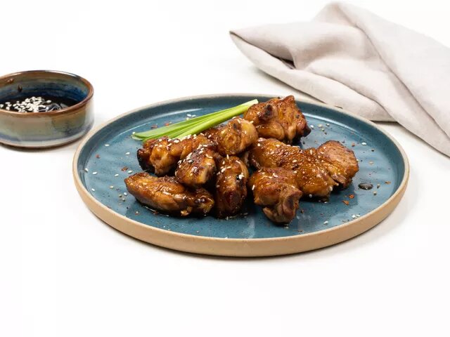 По китайскому поверью, молодым людям и девушкам нужно на Новый год есть куриные крылышки, чтобы повыше взлететь и добиться успеха. Поэтому крылышки по-китайски в остро-сладком соусе обязательно присутствуют на праздничном столе. Но такое вкусное блюдо можно приготовить и в будний день. Доступные по цене продукты, сочетаемость с любым гарниром и сытость делают это угощение поистине универсальным. Мясо можно замариновать, а можно приготовить сразу любым способом: на гриле, в духовке, на сковороде или в сотейнике. ПРОДУКТЫ ДЛЯ РЕЦЕПТА Куриные крылышки 800 г Паприка 2 ст. л. = 15 г Красный жгучий перец 1 ч. л. = 10 г Молотый имбирь 1 ч. л. = 5 г Оливковое масло 4 ст. л. = 60 г Кунжутное масло 2 ст. л. = 34 г Чеснок 4 зубчик = 16 г Мед 1 ст. л. = 28 г Устричный соус 4 ст. л. = 60 г Соевый соус 5 ст. л. = 75 г Для подачи Белый кунжут по желанию Зеленый лук по желанию ПОШАГОВЫЙ ФОТОРЕЦЕПТ Вымойте и обсушите бумажными полотенцами куриные крылья. Разрежьте их по фал