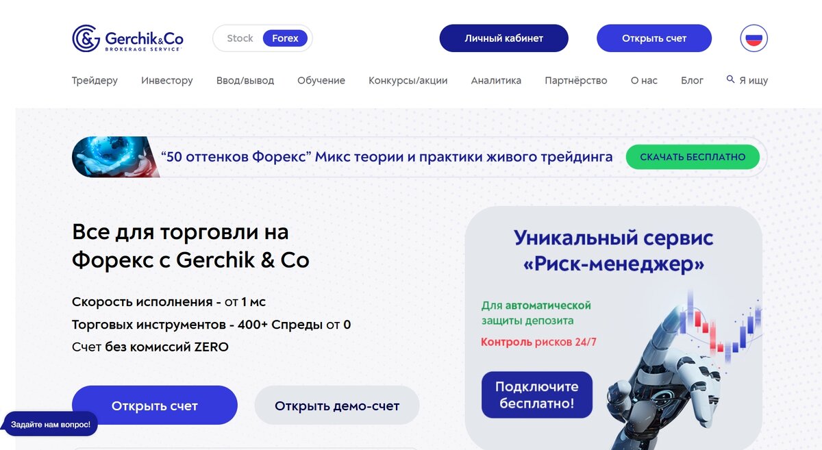 О компании Gerchik Co — организация, занимающаяся брокерской деятельностью. Основана в Украине в 2015-м году и носит имя своего создателя – Александра Герчика. В начале деятельности брокер ориентировался исключительно на страны СНГ, но позже вышел на международный уровень. В настоящее время юридический адрес – Республика Вануату. В декабре 2019-го года Международным объединением форекс-трейдеров «Герчик Ко» признана лучшей компанией в категории «Динамичное развитие», а в июне 2021-го The Ultimate Fintech включил ее в топ-3 глобального рейтинга в категории «Лучшее исполнение сделок». Предложения Компания Gerchik Co является STP-брокером, который работает одновременно с несколькими поставщиками ликвидности и выбирает для клиентов лучшие цены. На сайте размещена информация о счетах: У брокерской компании есть выгодные предложения не только для активных участников рынка. В случае, если клиент не готов к активной торговле, можно воспользоваться инвестиционными программами (минимальный взнос