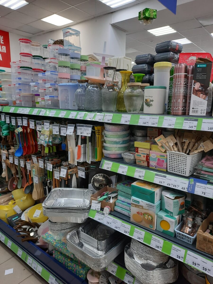 Спешу вам показать все самое интересное. Не пропустите, будет интересно! Буду благодарна вам за ваши "лайки" и комментарии. А вы не забудьте подписываться на мой канал. И так начнем обзор: Заглянем в разные отделы и посмотрим, что хорошее появилось: НАЧНЕМ ОБЗОР С ОТДЕЛА С ПОСУДОЙ: Здесь очень много новинок, но покажу только несколько из них, иначе обзор будет только этого отдела. Бульонница с ручками, 950 мл. Цены пока нет Состав: керамика. А вот расцветок много: Бульонницы тяжелые, это единственный их недостаток. Изготовлены они качественно и очень симпатичные. А еще привезли шикарную коллекцию посуды из опалового стекла: Это суповая тарелка, 19,5 см. "РОМАНС" Цена 99 рублей ИРАН ПРОИЗВОДИТЕЛЬ Есть в коллекции еще больше тарелка: 250мл. Цена 149 рублей А есть и такие, высокие, я не смогла их достать, но любая из них смотрится шикарно: Цены пока нет Вот так они стоят на полке: Привезли стеклянные салатники, 2 разных размеров, но из одной коллекции: Маленький салатник (блюдо