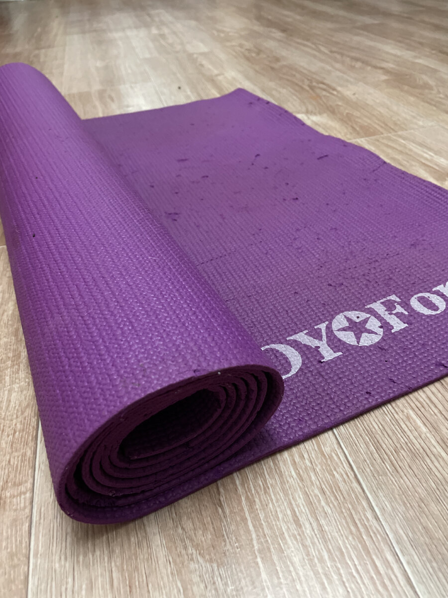 Коврик, вроде что такого? Просто обычный ПВХ, нужен для удобства выполнения асан...да и в принципе все. Но если погрузится немного в эзотерику, это очень энергетическая и дающая сила вещь. Все дело в том, что практикующий на своём коврики вкладывает свой труд, он впитывает все ваши старания, весь пот который на него попал это энергия. Но это можно почувствовать только спустя время, и когда ты встаёшь на чужой коврик, асаны почему-то получаются хуже, или наооборот, если коврик сильного практикующего, то у тебя получается куда лучше, будто тебе помогает что-то, заставляет твоё тело делать лучше. Вообщем коврик это как зубная щетка)