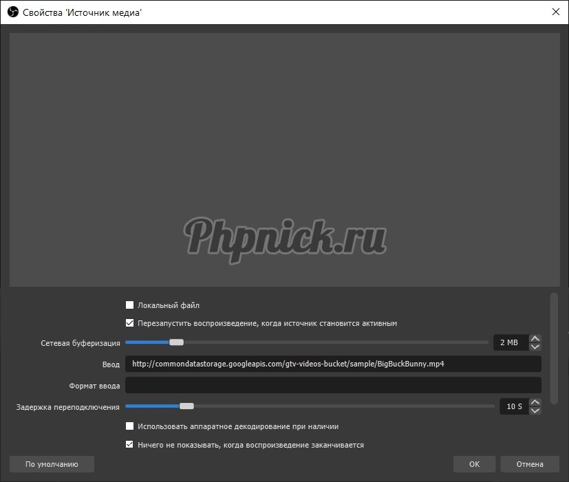 В этом примере в качестве источника медиа добавим в OBS ссылку, указанную выше. Из OBS можно вести трансляцию на различных сервисах, например, в YouTube, но в данном примере мы будем транслировать видео с помощью собственного сервера. В качестве такого сервера я выбрал бесплатный MistServer.