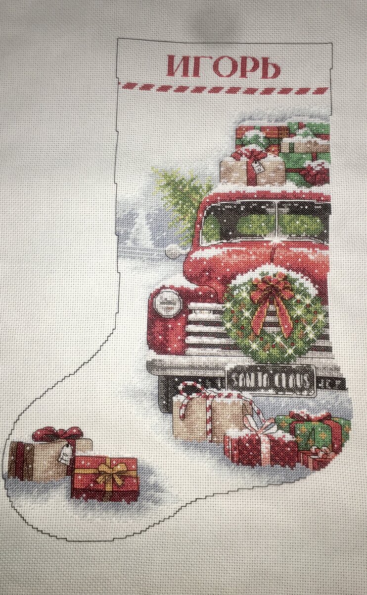 Готов мой очередной сапожок от Dimensions, ну как очередной, пока только второй, но я решила, что каждый год буду вышивать по сапожку, так что он точно не последний. Немного технической информации: Размер: 41 на 28 см Канва: Аида 14, цвет Ivory Количество цветов: 26 чистых и из них 2 бленда Техники: крест, полукрест, бэкстич, французские узелки. Количество стежков во всей работе: 15 418х Начала вышивать 6 сентября и закончила 9 ноября, вышивальных дней было - 47. Вышивала по программе Сага. Можно было закончить и быстрее, но я параллельно вышивала еще елочные игрушки, поэтому и скорость была не максимальная. Сапожок очень легкий, шился на одном дыхании, сложностей не возникало. Цвета яркие, приятные, добавляли новогоднего настроения. Бэк был логичный, счетный, а фрузелков было не так много, чтобы от них устать. Вышивала на снапах Calin, они обычно отлично держат натяжку, но запас канвы в наборе был небольшой и из за этого правый край частенько провисал, приходилось его постоянно подтя